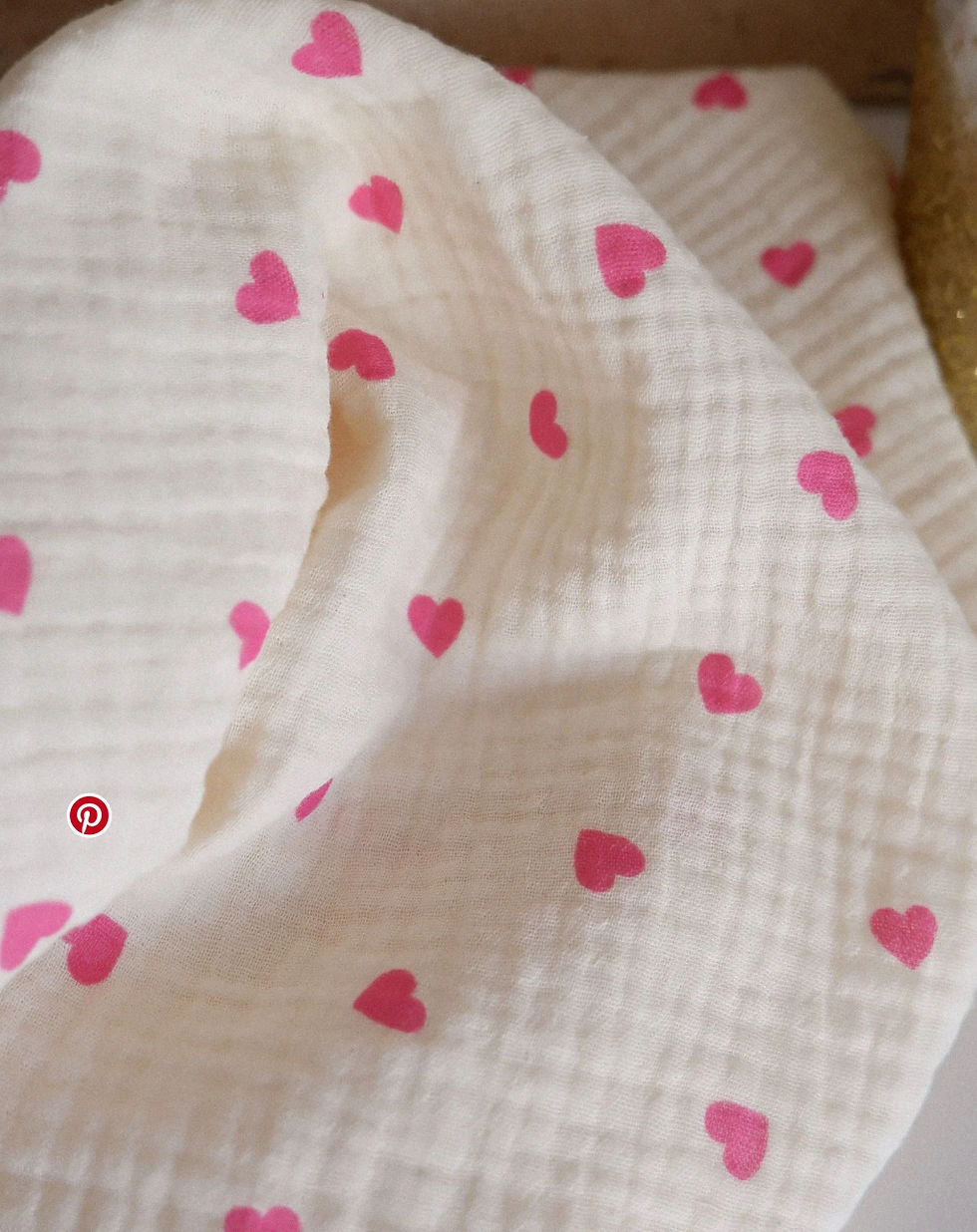 Jupe Femme double gaze de coton "Maria "(Cœurs olive)